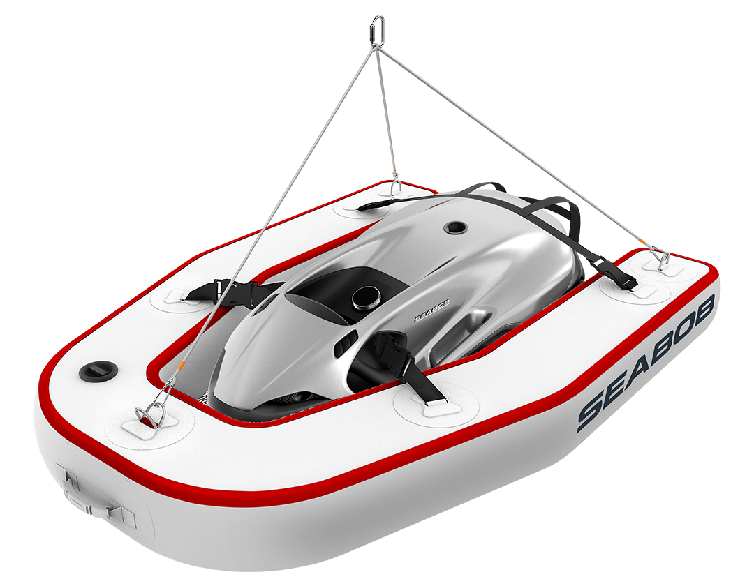 Dock gonfiabile. Per calare o sollevare un SEABOB dentro o fuori dall’acqua con una gru.